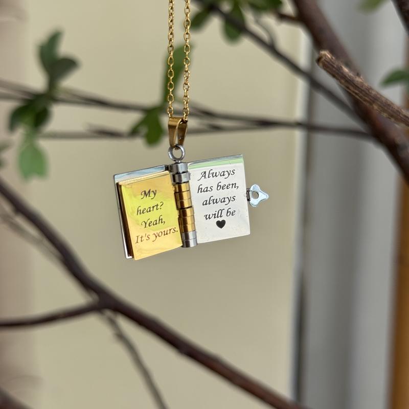 ๐ A Unique Expression of Love ๐ The necklace features a book design, symbolizing reading and learning. It's a thoughtful present for any occasion where you want to show your love and appreciation. The design is simple yet elegant, making it a cherished accessory for your loved ones.