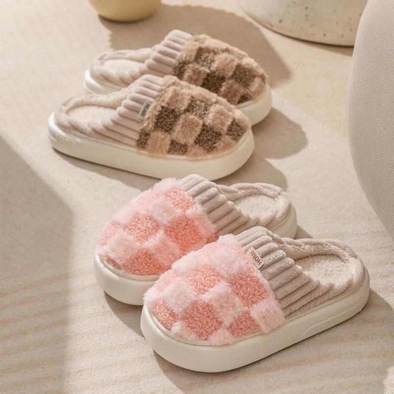 Fashionable Plaid Design Timeless plaid uppers in warm winter colors add retro charm to your lounge style.